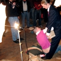 A performance piece in which we dress in men’s suits, heavily made-up, and smile continuously for four hours while offering mystery packages of free samples to the audience. We can choose to give or withhold a package from an audience member. By giving freely to some and not to others, we seed product-desire, construct arbitrary hierarchies and produce competition, humiliation, and even violence.