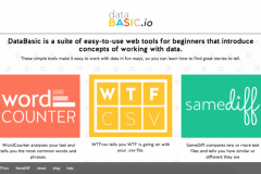 Databasic.io is a set of four online & mobile software tools and learning activities to introduce data science to youth, adult residents and civic professionals. It’s free and open source – http://databasic.io. They introduce newcomers to exploratory data analysis, quantitative text analysis and network analysis. The tools are free, open source, and available in 5 languages.