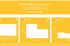 - WTFcsv: A web application that takes as input a CSV file and returns a summary of the fields, their data type, their range, and basic descriptive statistics. This is a prettier version of R’s “summary” command and aids at the outset of the data analysis process.
