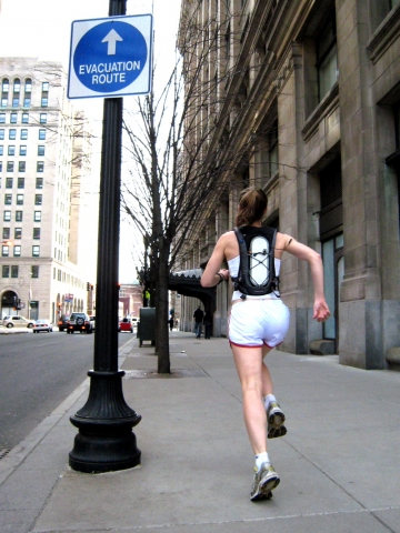 In 2007, I ran the entire evacuation route system in Boston and measured the distance in number of breaths taken. These tens of thousands of breaths were archived in a separate podcast and sculptural installation.